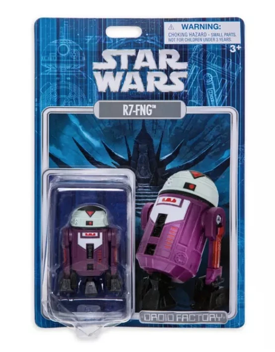 - Fully sculpted R7-FNG droid figure