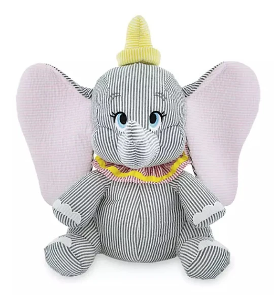 Seersucker, or railroad stripe, is a traditional fabric weave often used in suits and shirts — and now for designer Disney plush! Our Dumbo soft toy is finely sculpted in puckered, wrinkly, seersucker striped material for a classic look that collectors will love!